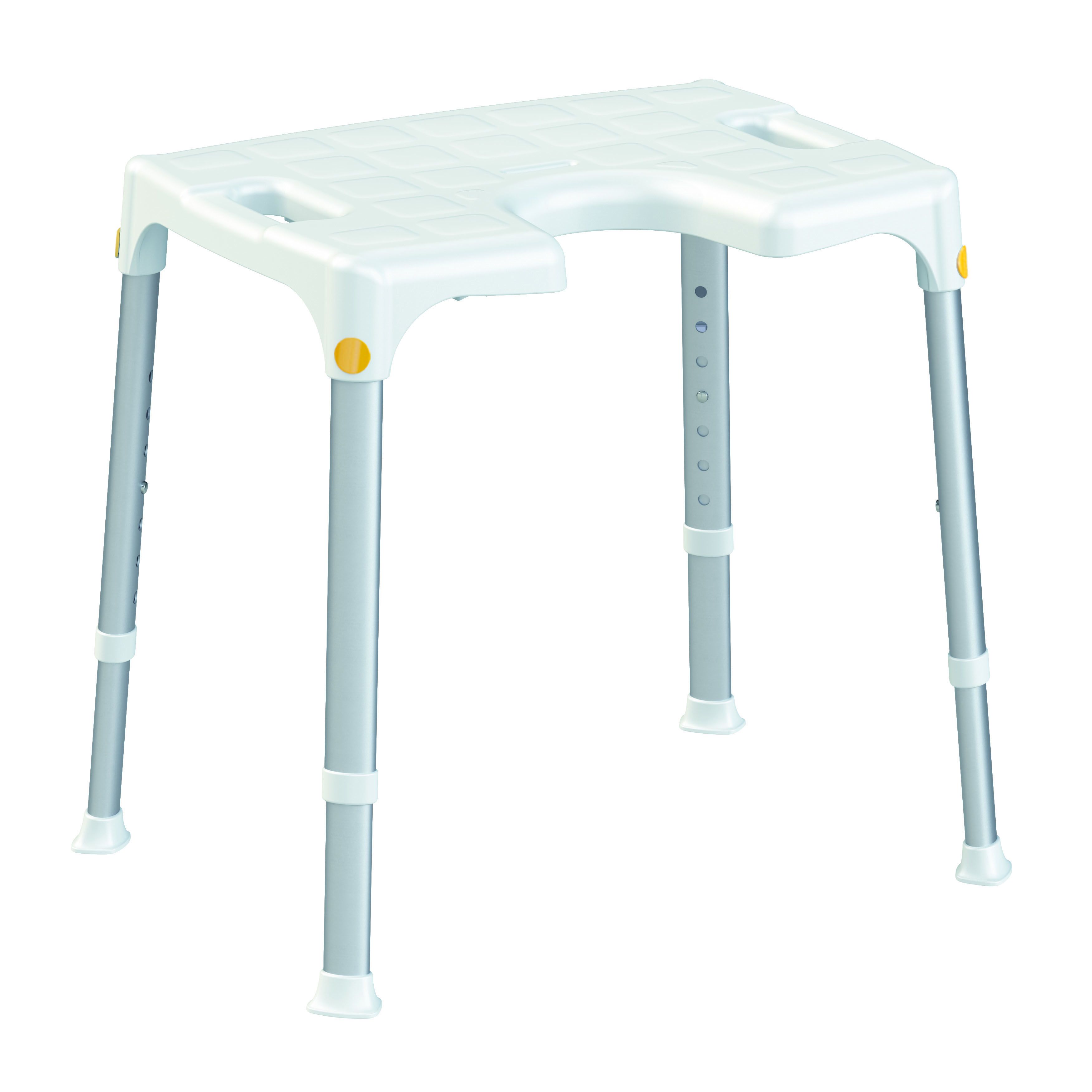 Banqueta con asiento en forma de "U" la cual facilita la higiene íntima. Está especialmente diseñada para ser utilizado en el baño. Sus patas extensibles permiten graduar la altura del asiento y sus conteras la dotan de gran estabilidad.