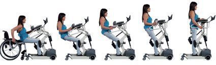 La incorporación se produce mediante un motor eléctrico, alimentado por baterías recargables y mediante un mando. La operación está también respaldada por el desplazamiento del soporte torácico. Está equipado además con un joystick y dos motores, que permiten efectuar cómodas transferencias con total independencia. Se ha previsto una amplia posibilidad de regulaciones para adaptar el aparato a las medidas del usuario, en particular es adaptable a usuarios con alturas comprendidas entre los 150 y 190 cm. El aparato puede plegarse parcialmente o desmontarse para facilitar su transporte en coche o guardado.