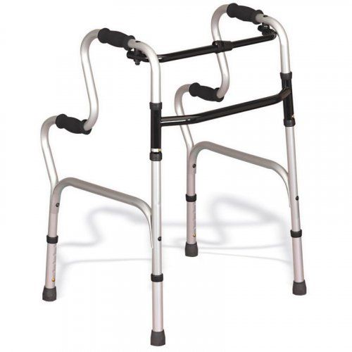 Además de caminador, sirve como ayuda para incorporarse desde la posción de sentado. Fabricado en aluminio. Plegable.