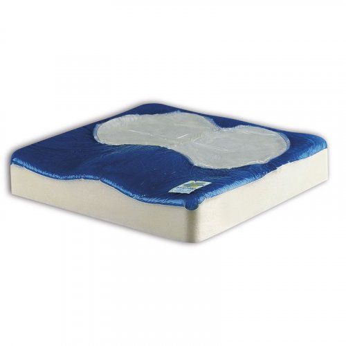 Innovadora combinación de dos tipos de gel y espuma de alta densidad para conseguir un cojín anatómico de óptima prevención de las úlceras por presión y que a la vez favorezca una buena estabilidad y proporcione confort. Los diferentes materiales se moldean a la vez, son totalmente solidarios entre sí de manera que se mueven dentro de la funda del cojín.