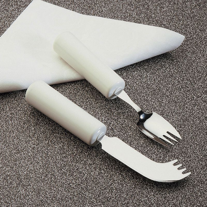 Pensados para personas que utilizan una sola mano. El tenedor- cuchara tiene cantos cortantes que actúan como un cuchillo, y una forma cóncava similar a la cuchara. El Nelson es un cuchillo con un tenedor en el extremo.