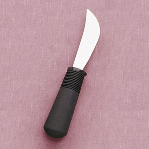Mango blando y de gran diámetro para agarrarlo cómodamente y con seguridad. Adecuado para personas con Parkinson, espasticidad y debilidad muscular. Apto para cortar con una sola mano. Hoja angulada para cortar con el mínimo esfuerzo.