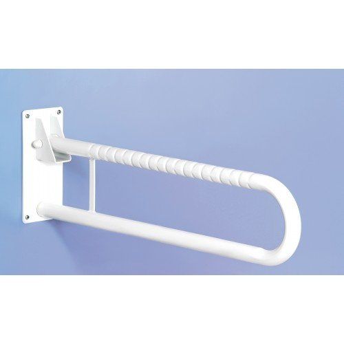 Acero pintado. Va montada sobre la pared. Es abatible y cuando está fuera de uso, queda fijada en posición vertical. No está recomendada para ambientes húmedos. Tubo de 32 mm de diámetro.
