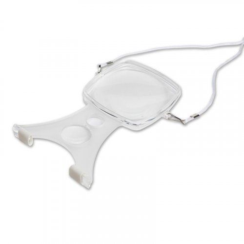 El regalo ideal para leer o para trabajos manuales, esta lupa viene con un cordel ajustable para llevarla alrededor del cuello y unos soportes de goma para apoyarla al cuerpo. Diámetro de la lente 130 mm y aumento x2.