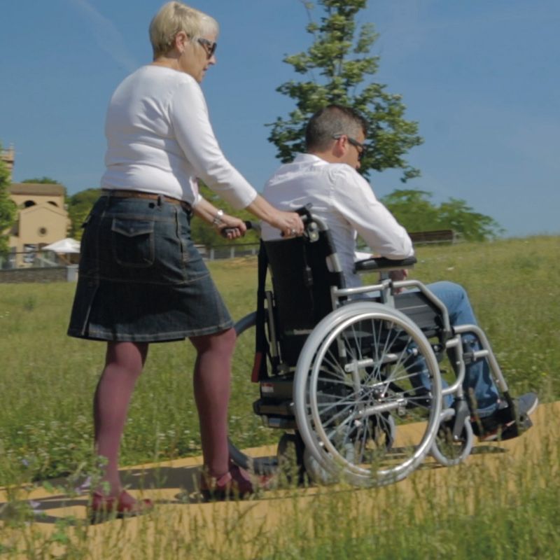 Evita el esfuerzo que implica tener que empujar una silla de ruedas y facilita la subida en las pendientes, rampas y superficies irregulares. Su exclusivo acoplamiento con un solo clic facilita su instalación y desmontado en segundos en la silla de ruedas.