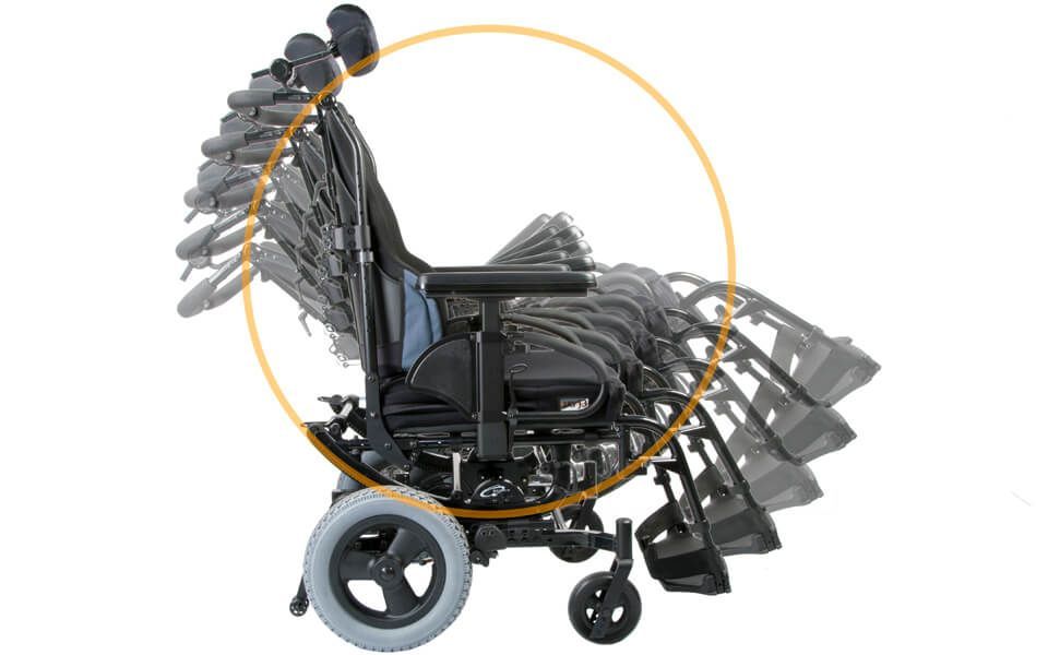 El centro de gravedad del usuario y el centro de rotación de la silla permanecen alineados durante la basculación. Esto proporciona importantes beneficios clínicos para el usuario: reducción de la presión sobre las tuberosidades isquiáticas, minimiza las reacciones de extensión y la espasticidad del paciente, así como importantes mejoras para el cuidador: mínimo esfuerzo para bascular la silla, maniobrabilidad y estabilidad con la base más corta posible.